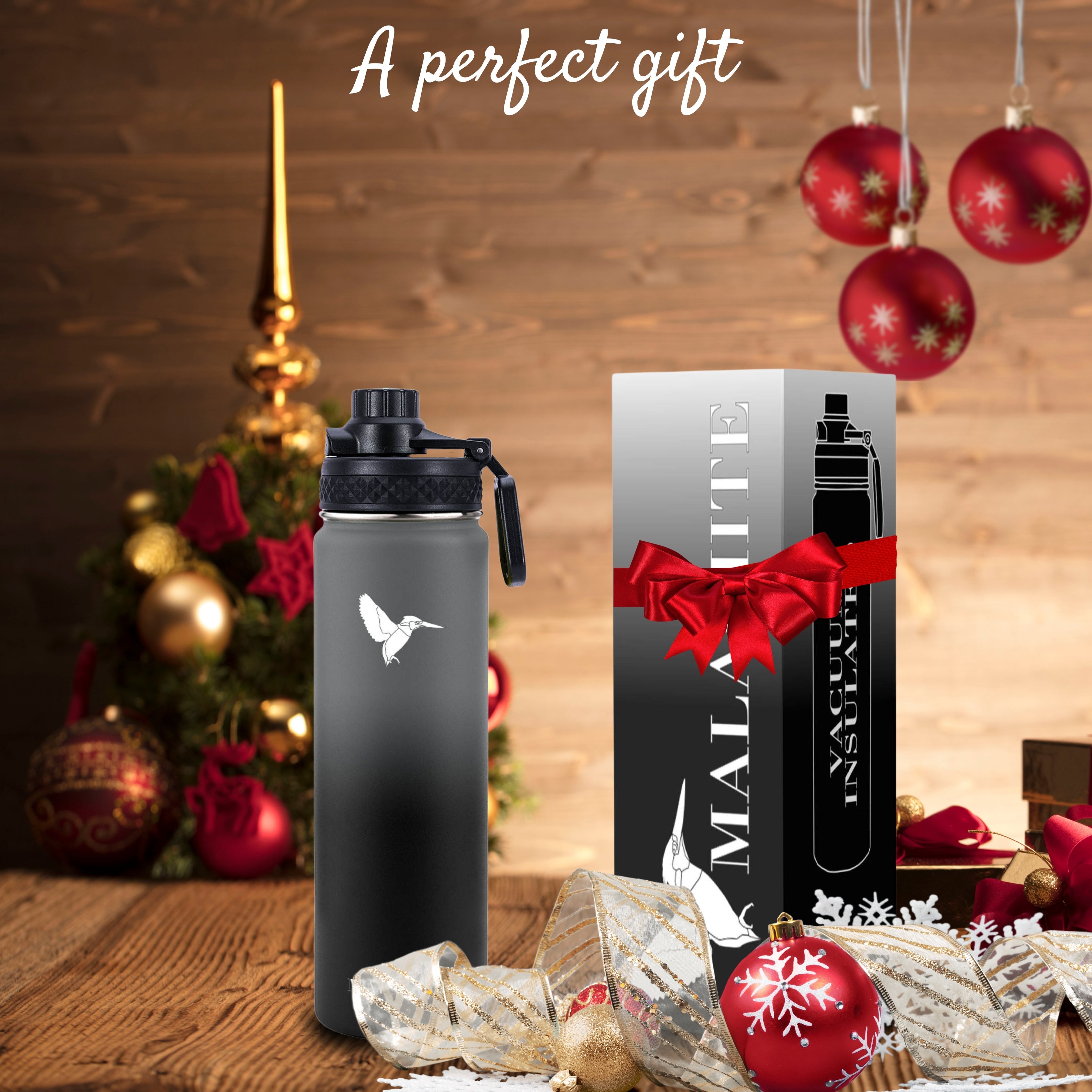 MALACIITE 22 oz Insulated Water Bottle (Gray) - Stainless Steel Water Bottles - Water Bottles for School - Metal Water Bottles - Thermos Kids Water Bottle for School - Thermos Water Bottle